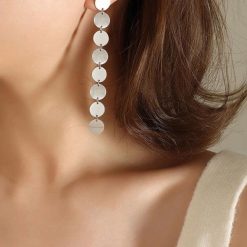 Elegant Disc Titanium Drop Earrings | Mature Women’s Earrings